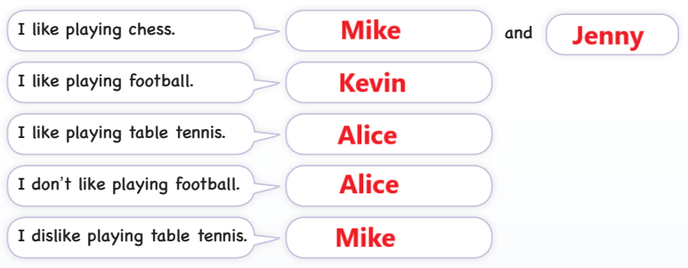 Çeviri: Cümleleri okuyun. A kısmına bakın. İsimleri yazın.