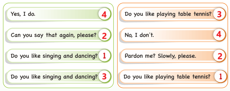 A. Number the sentences in the correct order to make dialogues.