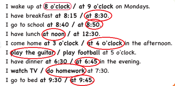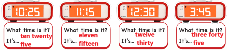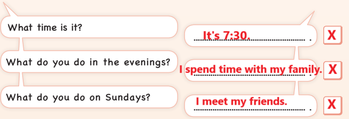 Çeviri: İşaret edin, sorun ve cevaplayın. Daha sonra süreleri kelimelerle yazın.