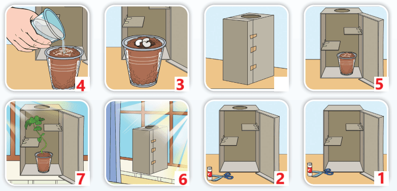 3. Plant the bean seeds in a cup of soil. (Fasulye tohumlarını bir fincan toprağa ekin.)