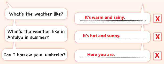 Çeviri: Hava durumu haritasına bakın. Dinle, işaret et ve cevapla.