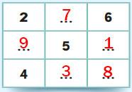 2. Yanda verilen şekilde yan yana, alt alta ve çapraz gelen üç sayının toplamı 15’e eşittir. Buna göre noktalı yerlere gelmesi gereken sayıları bulunuz.
