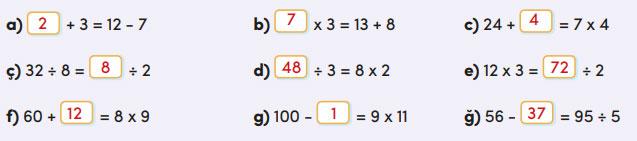 1. Aşağıdaki eşitliklerde boş bırakılan kutulara uygun sayıları yazınız.