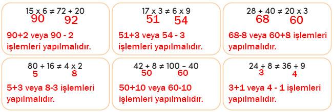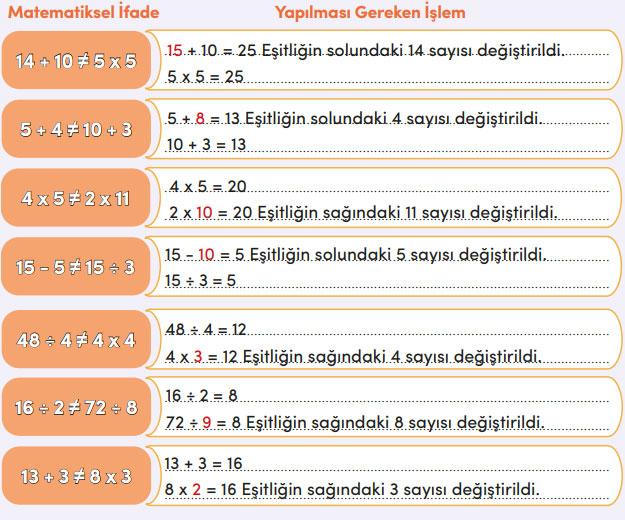 Aşağıda eşit olmayan ifadeler verilmiştir. Bu matematiksel ifadelerin eşit olabilmesi için yapılması gereken işlemleri yazınız.