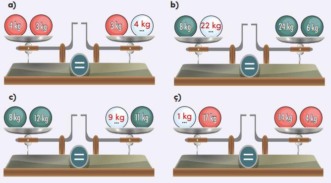 Sağda değeri bilinmeyen iki ağrılığın toplam ağırlıkları 4 kilogramdır.