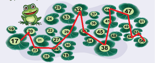 2. 17’den başlayıp her adımda 3 artan sayı örüntüsünü takip eden kurbağanın geçtiği yolu oklarla çiziniz