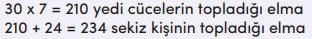 2. Pamuk Prenses ve yedi cüceler elma toplamaya gidiyor. Pamuk Prenses tek başına 24 kg elma topluyor. Cücelerin her biri ise 30 kg elma topluyor. Buna göre 8 kişi toplam kaç kg elma toplamıştır?