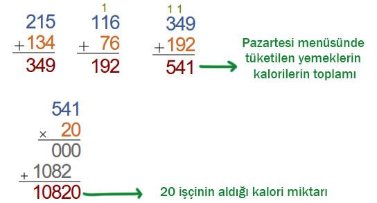 Bunun için pazartesi günü çıkan yemeklerdeki kalori miktarını toplamalı daha sonra onu 20 ile çarpmalıyız.