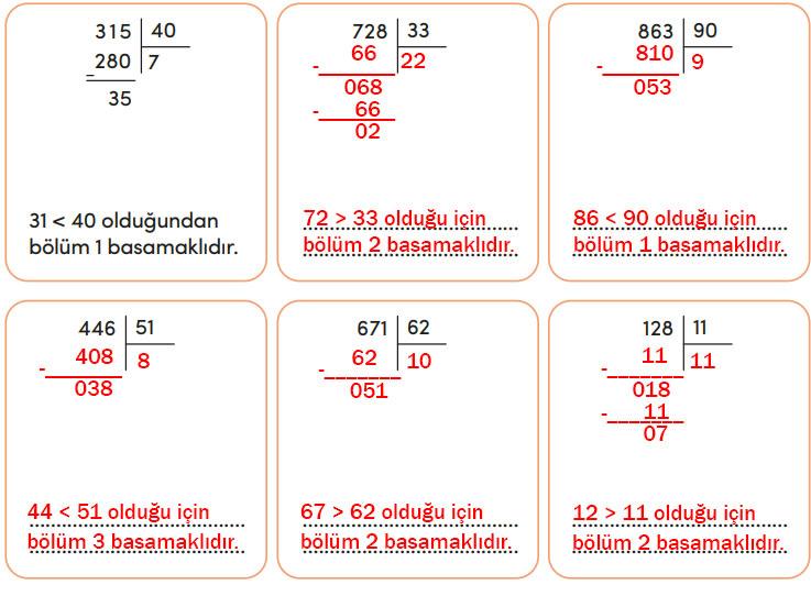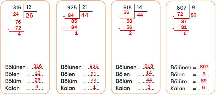 4.Sınıf Matematik Ders Kitabı MEB Yayınları 85-86-87-88. Sayfa Cevapları Bölme İşlemi
