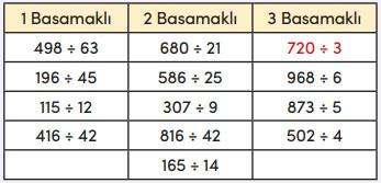 Aşağıdaki bölme işlemlerini inceleyerek bölümün basamak sayısını tahmin ediniz. Daha sonra bölme işlemini yaparak tahmininizi sonuçla karşılaştırınız.