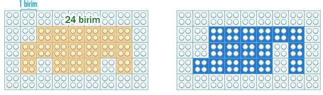 Emrecan legolarıyla sarı bir otobüs yapıyor. Emrecan’ın sarı legolarla yaptığı geometrik şeklin çevresini bulunuz. Yanındaki boşluğa aynı çevre uzunluğunda bir geometrik şekil tasarlayıp şekli boyayınız.