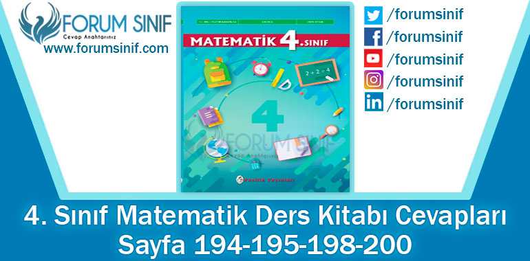 4. Sınıf Matematik Ders Kitabı 194-195-198-200. Sayfa Cevapları Pasifik Yayınları