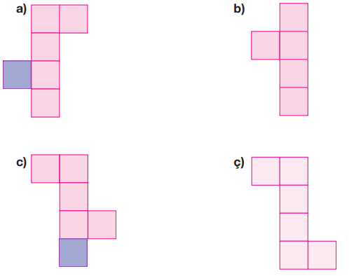 2-) Aşağıdaki birim karelere küpün açınımı olacak şekilde birer birim kare çizerek ekleyiniz.