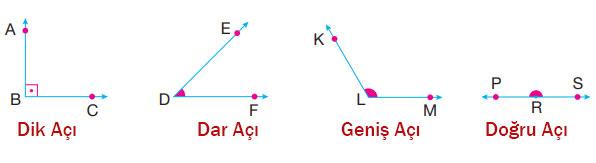 10-) Aşağıdaki açıların çeşitlerini altlarına yazınız.