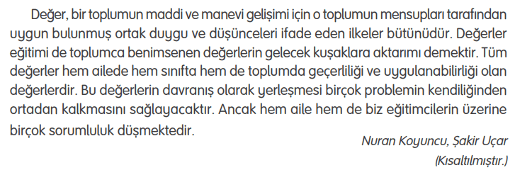 8. Erdemler teması içinde en çok hangi metni beğendiniz? Nedenleriyle birlikte yazınız.