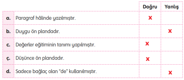 Cevap: En çok ”Bölüşmek Güzeldir” metnini beğendim. Çünkü paylaşmanın önemi çok güzel anlatılmıştı.