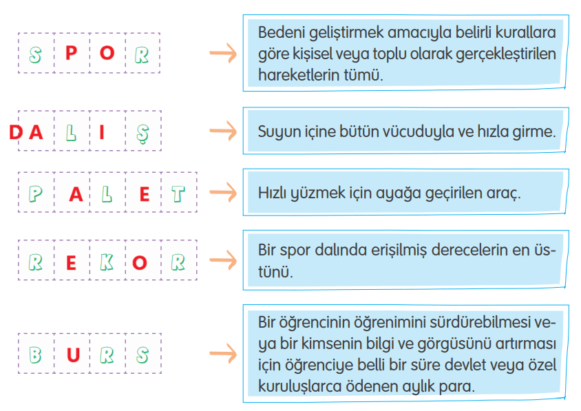 Metinden alınan aşağıdaki kelimeleri tahtaya yazınız. Ardından “Bende Var” oyunu hakkında verilen görseli inceleyerek bilgileri okuduktan sonra oyunu öğretmeninizin rehberliğinde oynayınız.