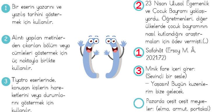 Yay ayracın kullanım alanlarını okuyunuz. Verilen örneklerle kullanım alanlarını eşleştiriniz.