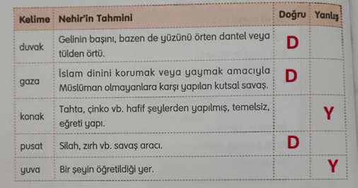 Aşağıdaki cümlelerde altı çizili kelimelerin anlamlarını cümledeki bağlamından hareketle tahmin edip yazınız. Tahminlerinizin doğruluğunu sözlüğünüzden kontrol ediniz. Anlamını öğrendiğiniz kelimeleri sözlüğünüze yazarak bunları birer cümlede kullanınız.