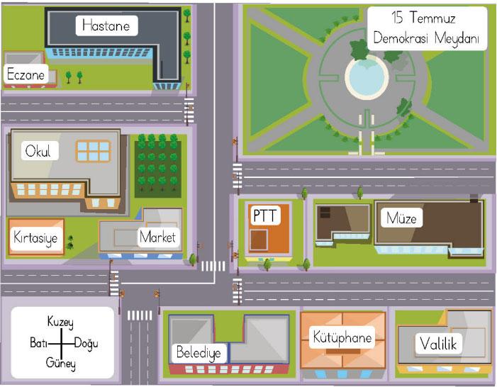 Cümlelerde verilen boşlukları krokiye göre doldurunuz.