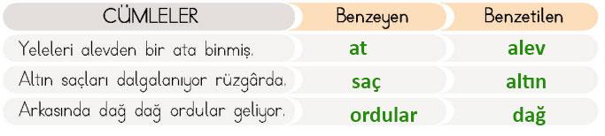 Verilen dizelerde benzeyen ve kendisine benzetilen kavramları yazınız.