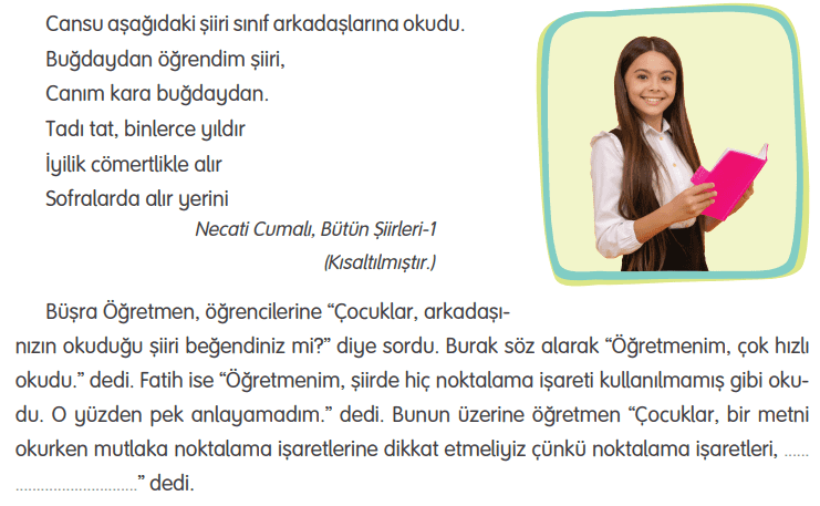 Aşağıdaki paragrafta ( ) içine uygun noktalama işaretlerini yazınız.