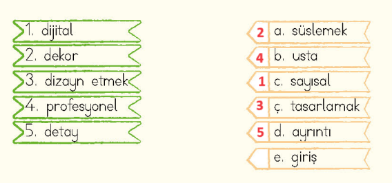 4. Verilen sözcükleri Türkçe karşılıkları ile eşleştiriniz.
