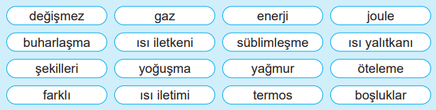 A. Aşağıdaki cümlelerde boş bırakılan yerleri kutuların içindeki uygun ifadelerle tamamlayalım.