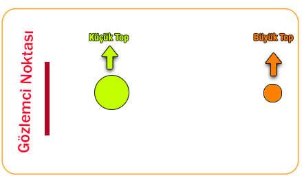 a. Topları, gözlemci noktasından gördüğümüz büyüklüklerine göre çizelim.