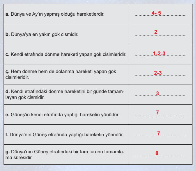 5.Sınıf MEB Yayınları Fen Bilimleri Ders Kitabı 44-46-48-49 Sayfa Cevapları Dünya’mız ve Gökyüzündeki Komşularımız