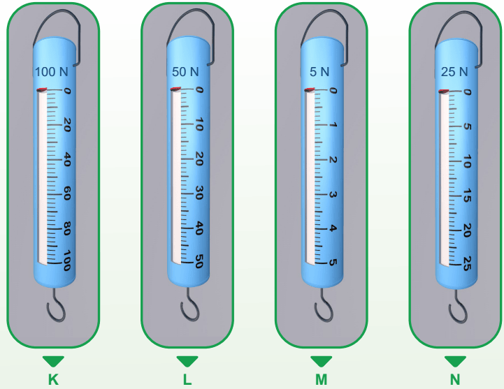 Cevap: M isimli dinamometre, 3N büyüklüğündeki en hassas şekilde ölçer.
