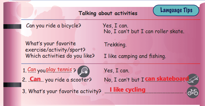 Çeviri: Resmi kullanın ve en sevdiğiniz aktivitelerden bahsedin.