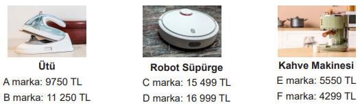 Nil Hanım, TL cinsinden fiyatları verilen farklı markalara ait aşağıdaki eşyaların her birinden bir tane satın alacaktır.