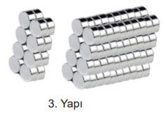 Nevzat, yandaki gibi bir yapı oluşturmak istiyor. Bu yapıyı oluştururken kullanacağı mıknatıs sayısını hesaplarken sonuçları birbirine eşit üç farklı işlem yapıyor.