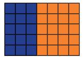 Kareli zeminde verilen yandaki dikdörtgenin alanını veren sayı cümlesini mavi ve turuncu dikdörtgenlerin alanları toplamından yararlanarak yazınız.