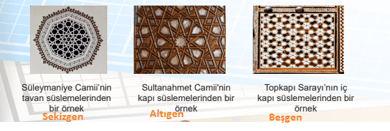 Aşağıda Türk mimarisinde önemli yere sahip bazı eserlerden görseller verilmiştir. Görsellerdeki geometrik şekilleri inceleyiniz. Hangi geometrik şekillerle karşılaştınız?