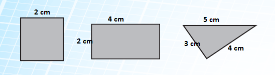 Aşağıdaki şekillerin kenar uzunluklarını cetvelle ölçünüz ve üzerine yazınız.