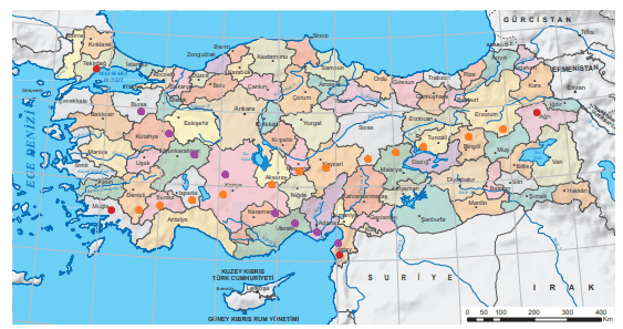 Aşağıdaki Türkiye’nin Milki İdare Bölümleri ile Kara ve Deniz Komşuları Haritasını inceleyiniz. Haritadaki illerden hangilerini ziyaret etmek isterdiniz.
