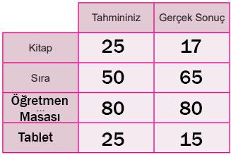 3) Kitabınızın, sıranızın veya belirlediğiniz başka bir nesnenin üst yüzünün belli bir kenar uzunluğunu tahmin ediniz ve ardından onları cetvelle ölçünüz. Tahminlerinizle gerçek sonuçları karşılaştırınız.