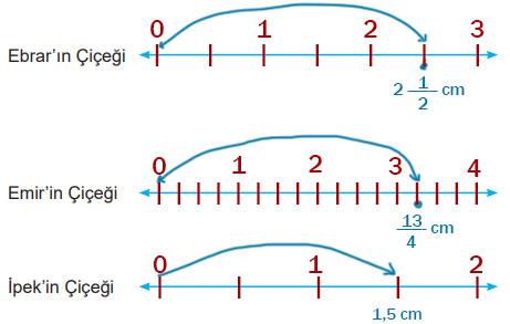 1) Çiçeklerin boylarındaki uzama miktarlarını sayı doğrusuyla gösteriniz.
