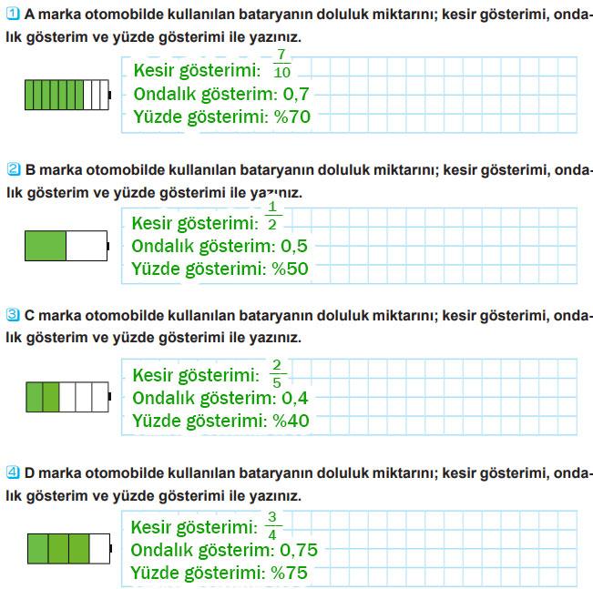 5.Sınıf Matematik Ders Kitabı MEB Yayınları 17-18-19-20-21-22-23-24-25-26-27-28-29-30-31. Sayfa Cevapları 2. KİTAP Kesirleri Farklı Biçimlerde Temsil Etme