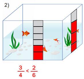 Daha sonra boş bir akvaryumun yüzeyine yapıştırılan iki kâğıt parçası üzerinde bu kesirleri modelleyerek tahmininizin doğruluğunu kontrol ediniz. (Kesirleri modellerken alt kısımdan başlayarak tarayınız.)