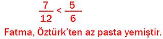 2) Öztürk ve Fatma’nın yediği pasta miktarlarını karşılaştırarak hangisinin daha az pasta yediğini tahmin ediniz. Tahmininizin gerekçesini açıklayınız.