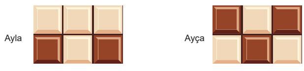 Ayla ile Ayça; beyaz ve bitter çikolatanın karışık olarak yerleştirildiği bir çikolatadan alıyorlar. Eş parçalardan oluşan bu çikolatanın görüntüsü aşağıda verilmiştir.