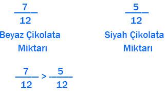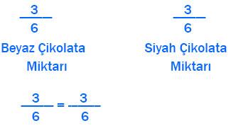a) Ayla’nın çikolatasının beyaz ve bitter çikolata miktarlarını bütüne göre kesir olarak ifade ediniz ve karşılaştırınız.