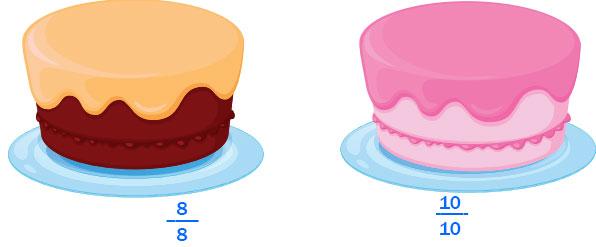 Çikolatalı pastayı 8, çilekli pastayı ise 10 eşit büyüklükte parçaya ayırmıştır.