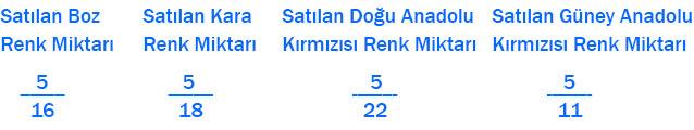 4) Satılan her bir renkteki büyükbaş hayvan için belirlediğiniz kesir gösterimlerinden en büyük ve en küçük olanını yazınız.