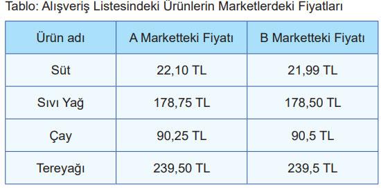 Selin ve Tugay farklı iki markete gidip alacakları ürünlerin fiyatlarını karşılaştırarak bu ürünler hangi markette daha ucuz ise oradan alışveriş yapmaya karar vermiştir.