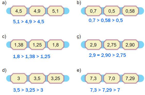 Aşağıdaki ondalık gösterimleri sembol kullanarak büyükten küçüğe sıralayınız.