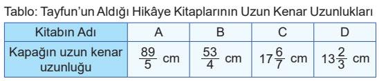 1) Tayfun, yeni aldığı hikâye kitaplarını, kapaklarının uzun kenar uzunluklarına göre büyükten küçüğe doğru olacak şekilde rafa yerleştirmek istiyor.